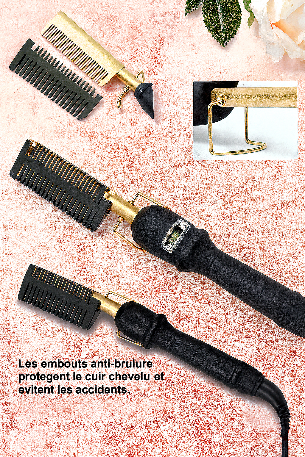 Peigne Lissant Électrique Anti-Brûlure