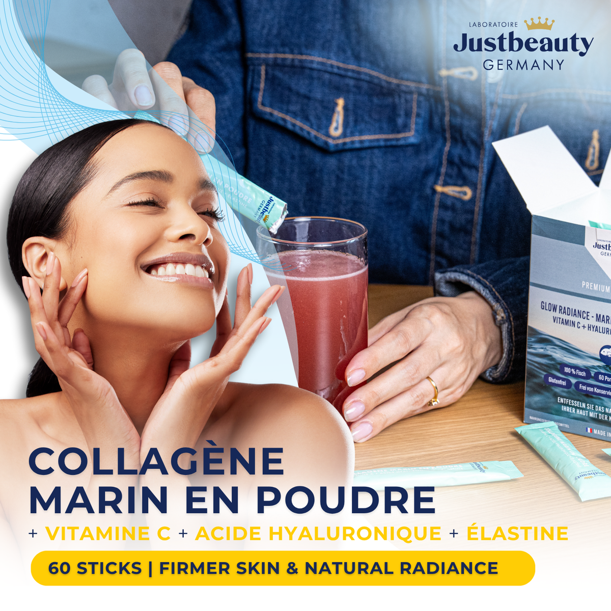 Oubliez l’ancienne génération. Le Laboratoire JUSTBEAUTY GERMANY réinvente le collagène avec GLOW RADIANCE, une formule boostée et cliniquement plus performante, conçue pour offrir des résultats visibles plus rapidement.