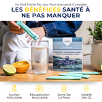 Fini les dosages approximatifs et les gros pots. Glow Radiance arrive en sticks nomades pré-dosés (60 sticks – 327 g), à emporter partout et à mélanger en un clin d'œil à vos boissons préférées.