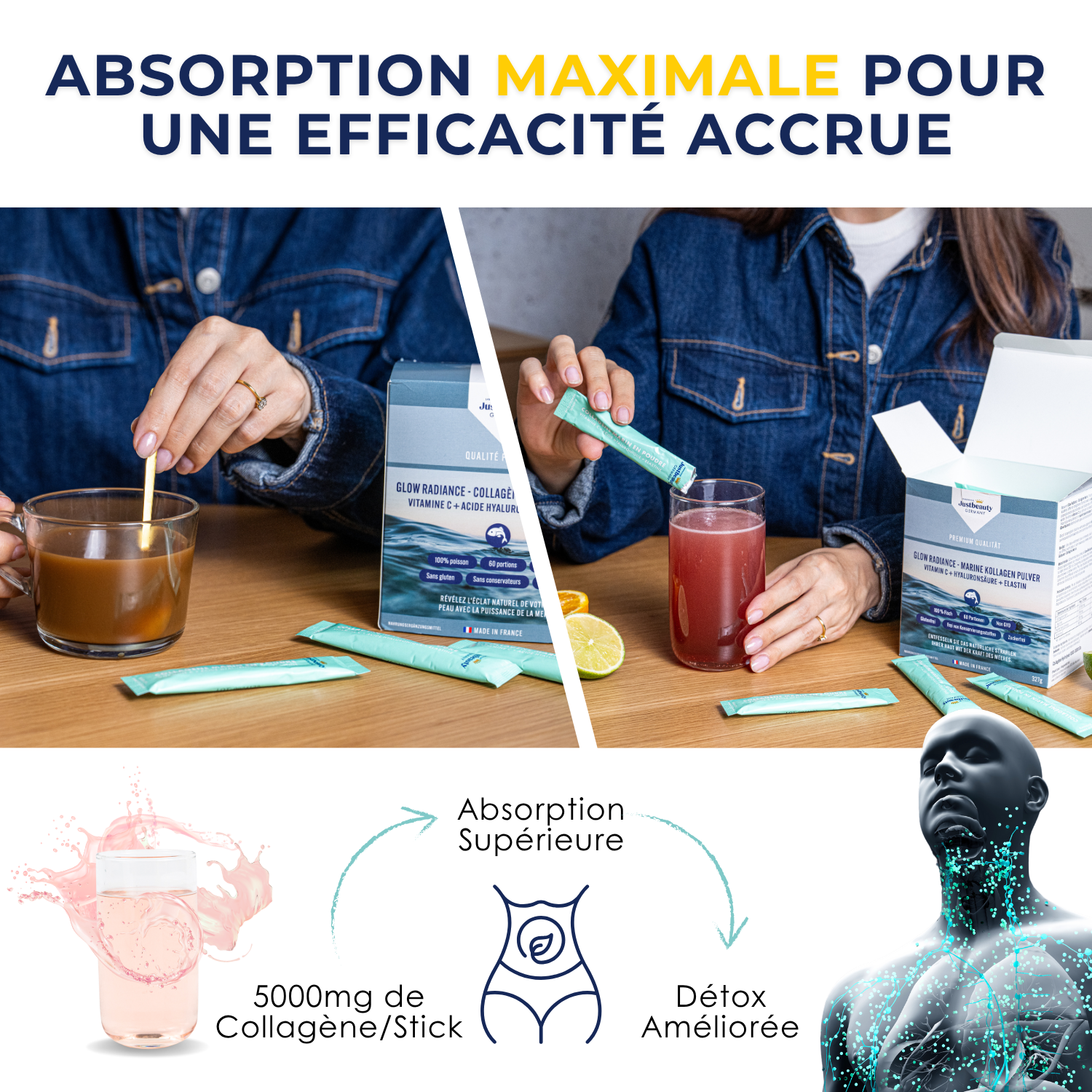 GLOW RADIANCE – COLLAGÈNE MARIN EN POUDRE + VITAMINE C, ACIDE HYALURONIQUE & ÉLASTINE